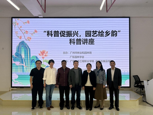 2025年11月27日下午,由广州市林业和园林局与广东园林学会共同主办,广东生态工程职业学院园艺与食品学院承办的“科普促振兴,园艺绘乡韵”专家讲座,在广东生态工程职业学院顺利举行。广州市林业和园林局科技处代表何培阳、广东生态工程职业学院党委委员及园艺与食品学院院长吴刚、广东园林学会副秘书长王代容以及校内师生约150人参与活动。