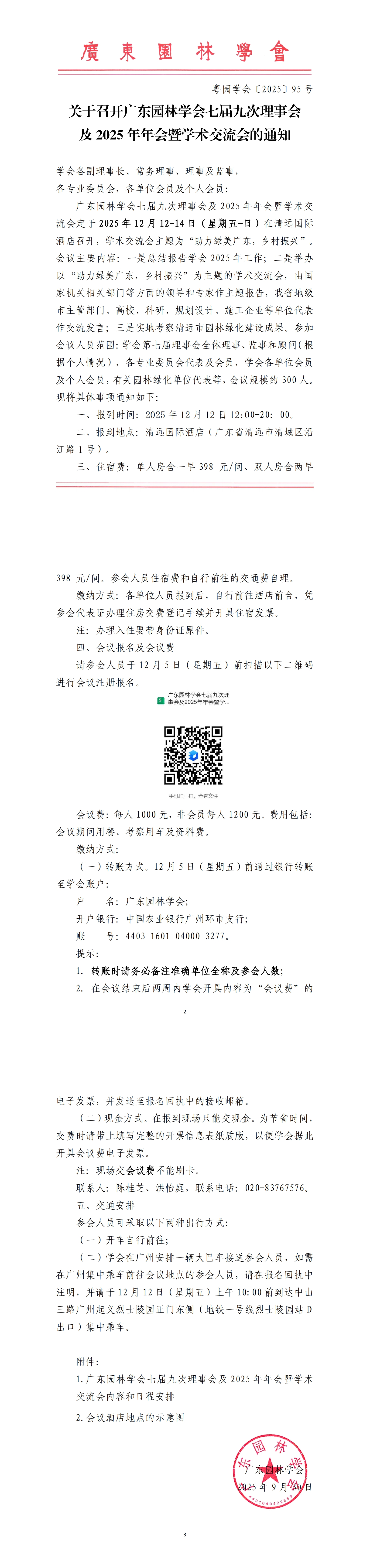 • 附件下载:广东园林学会七届九次理事会及2025年年会暨学术交流会内容、日程安排及会议酒店地点的示意图