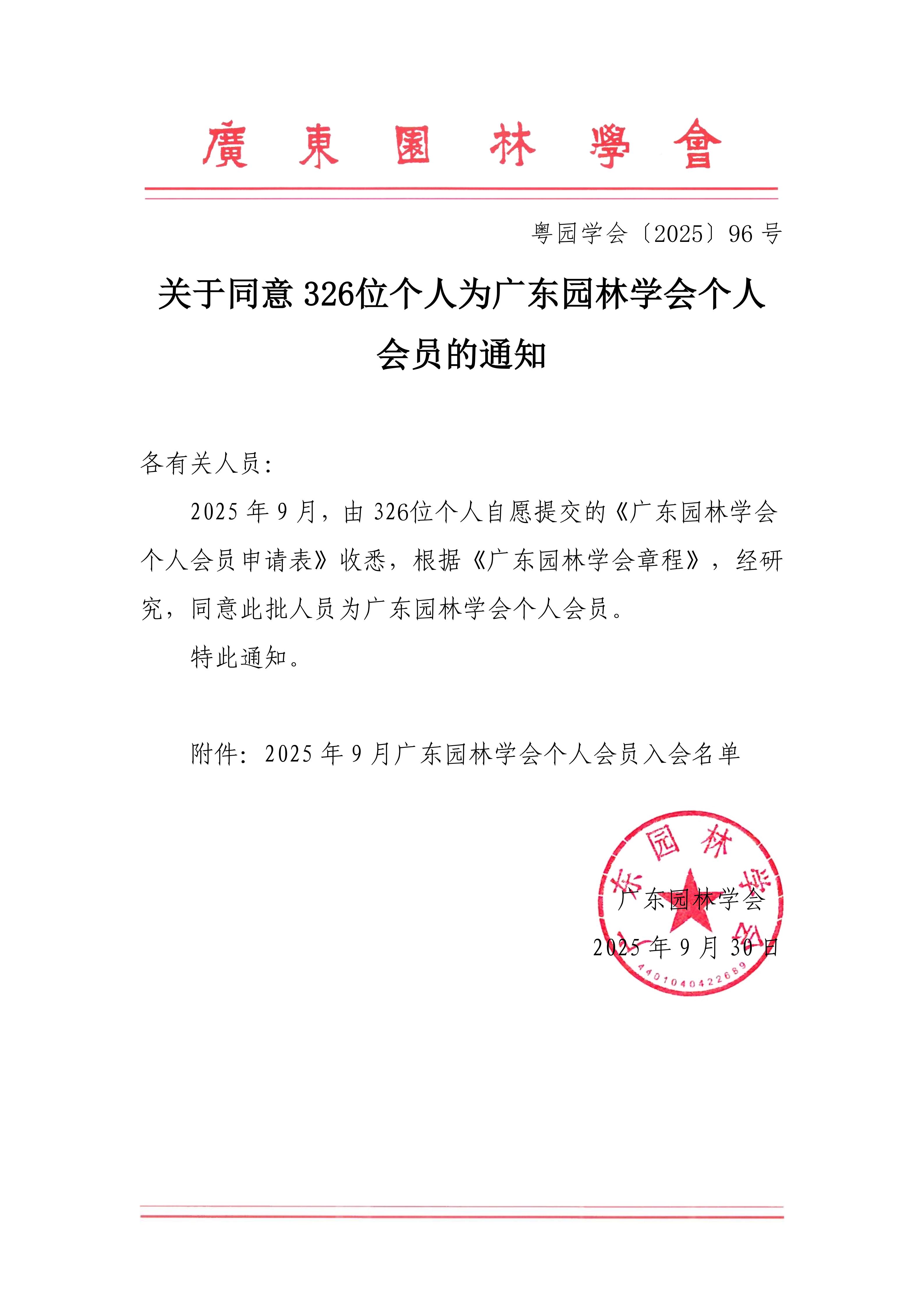 • 附件下载:2025年9月广东园林学会个人会员入会名单
