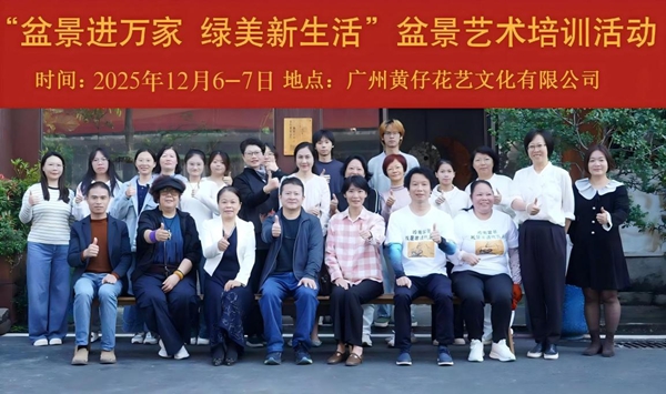 2025年12月6—7日“盆景进万家,绿美新生活”盆景艺术培训活动在广州黄仔花艺文化工作室顺利举办。本次活动由广州市林业和园林局、广东园林学会主办,广东园林学会盆景赏石专业委员会(以下简称“专委会”)承办,广东园林学会科学技术普及工作委员会、广州市越秀区醉松亭文化艺术服务工作室、广州黄仔花艺文化有限公司协办。活动旨在将岭南盆景技艺带入大众生活,让“绿美”理念扎根千家万户,吸引了近60名学员报名参加。