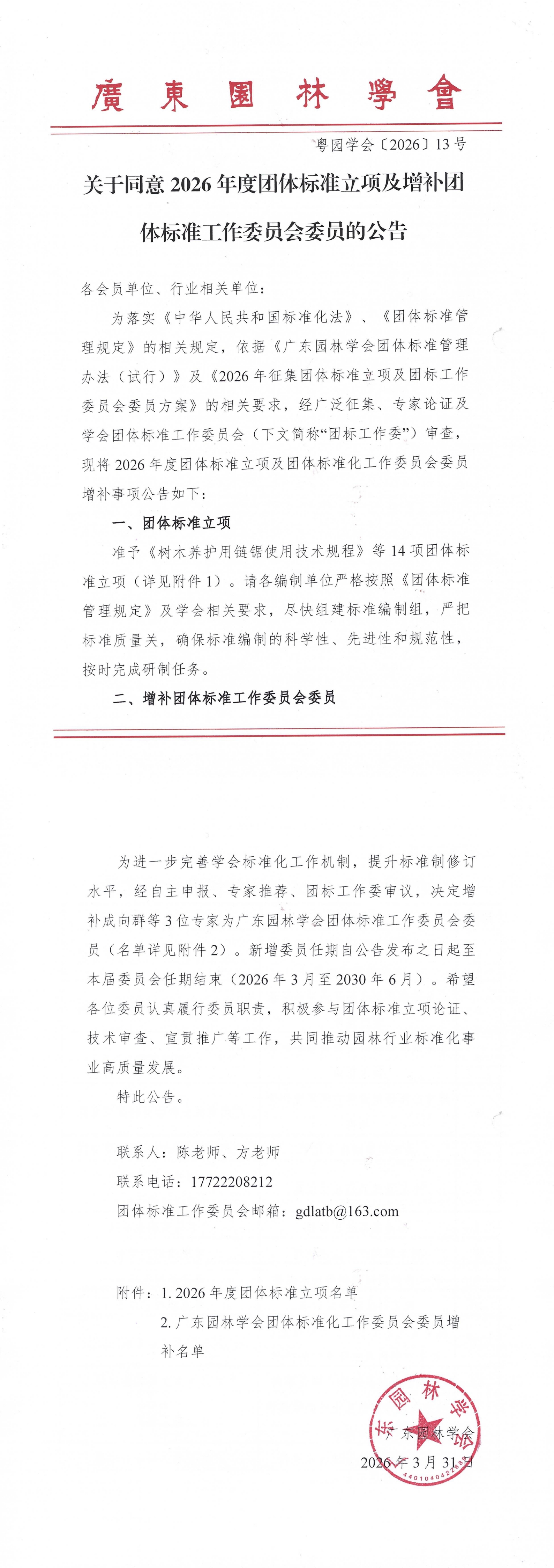 • 附件下载:关于同意2026年度团体标准立项及增补团体标准工作委员会委员的公告